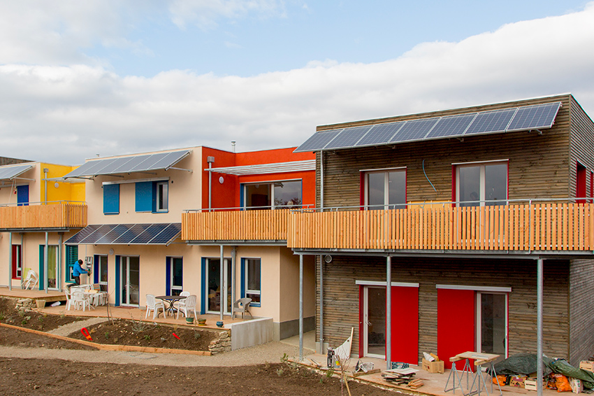 ![]() ![]() Ce projet concerne la construction d'une résidence en habitat groupé, participatif et écologique sur la commune de Forcalquier. Il se compose de deux bâtiments de six logements collectifs et quatre logements individuels traversants et d'un édifice en autoconstruction. Il s'inscrit dans une volonté des maîtres d'ouvrage de valoriser des filières biosourcées, si possible locales, de favoriser le bien vivre ensemble et de construire un bâtiment exemplaire. Chaque logement est différent et adapté aux besoins des familles.