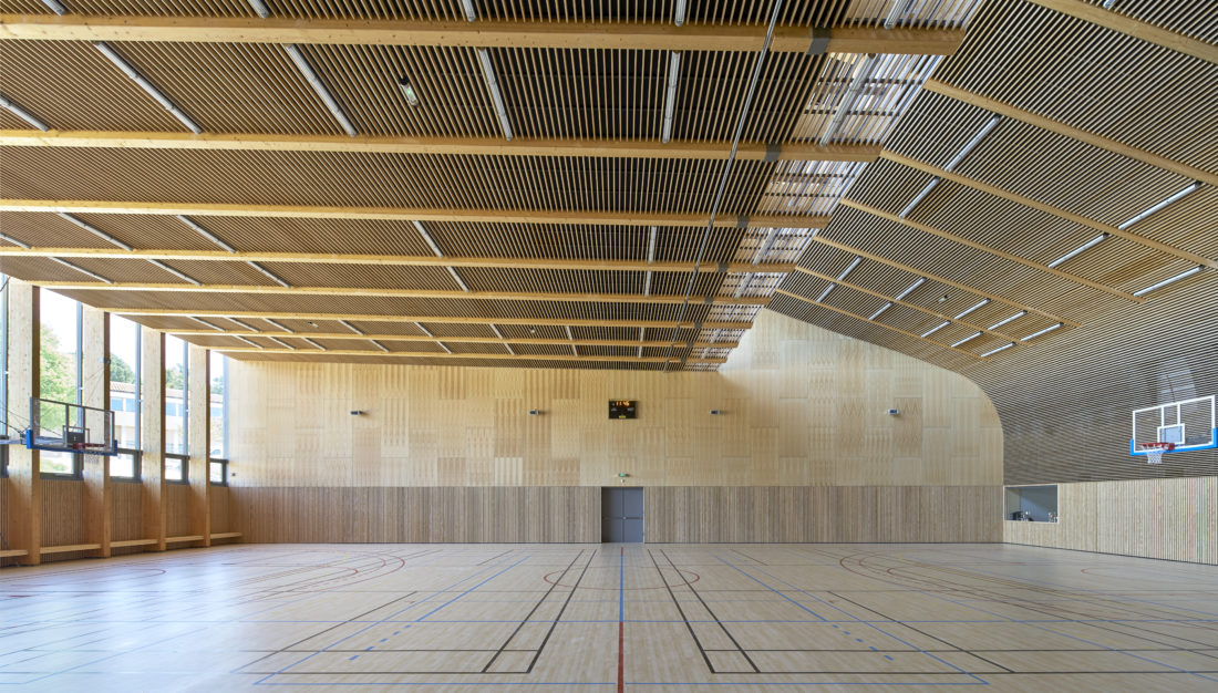 Il a pour objectifs de répondre à un besoin de la commune et du lycée, tout en proposant des équipements de qualité, accessibles et s'intégrant dans une démarche environnementale pérenne. Le bâtiment se compose d'un gymnase, de vestiaires et de bureaux. Le gymnase est construit en ossature bois issus des Alpes. Seul le mur pignon en façade Ouest est en béton de 25 cm isolé avec de la laine de bois. En parallèle, les vestiaires ont été conçus en béton avec une isolation par l'extérieur en polystyrène expansé. Afin de limiter les pertes thermiques, les toitures en acier du gymnase et en béton des vestiaires bénéficient d'une isolation performante. Enfin, les dalles en béton des différents planchers bas, isolées avec 10 cm de polystyrène expansé, contribuent à apporter de l'inertie thermique au bâtiment. Afin de limiter les apports solaires directs sur la façade vitrée située au Nord, une résille réalisée en mélèze bois des alpes joue le rôle de brise soleil. En parallèle, des auvents métalliques protègent les vestiaires de l'éclairage zénital. Enfin, la présence d'ouvrants de ventilation en façade Sud permet une ventilation naturelle traversante. Côté équipement, le bâtiment est chauffé par la chaufferie bois du lycée via un réseau de chaleur. L"émission de chaleur est assurée par un plancher chauffant dans le gymnase et par des radiateurs dans les vestiaires. Le renouvellement de l'air est réalisé par des CTA double flux dans l'ensemble des locaux. La production d'ECS est réalisée par une installation solaire avec un appoint bois en période de chauffage ou électrique en l'absence de chauffage. Enfin, une attention particulière a été portée sur la puissance d'éclairage installée afin de limiter les consommations énergétiques liées à ce poste. Cette fiche présente les solutions techniques et économiques retenues par le maître d'ouvrage. |